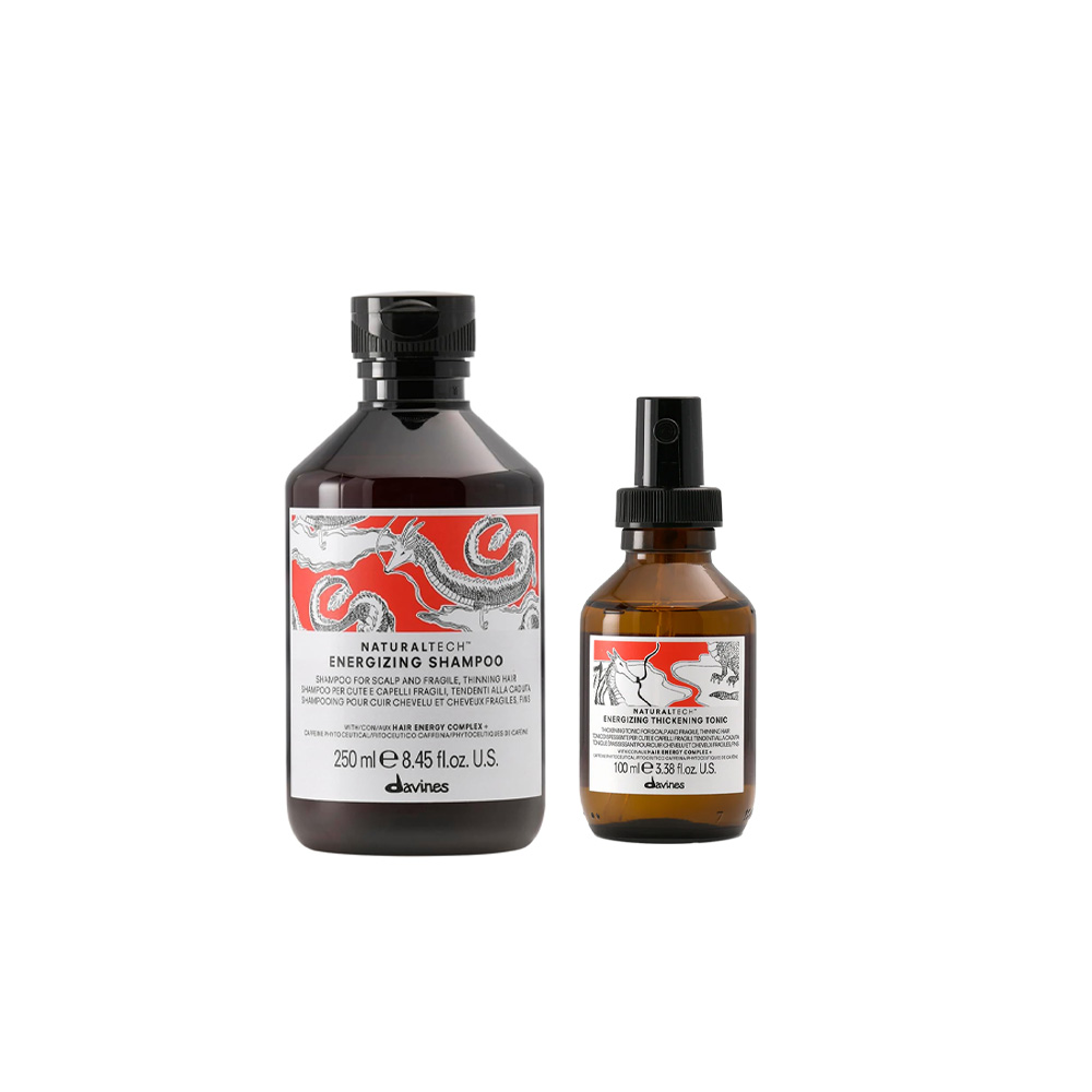 Pair Davines Energizing Shampoo 250ml with the Energizing Thickening Tonic 100ml for a clinically studied two-step scalp and hair-density routine. Caffeine and niacinamide actives reduce shedding and improve thickness — save 15% when purchased together.