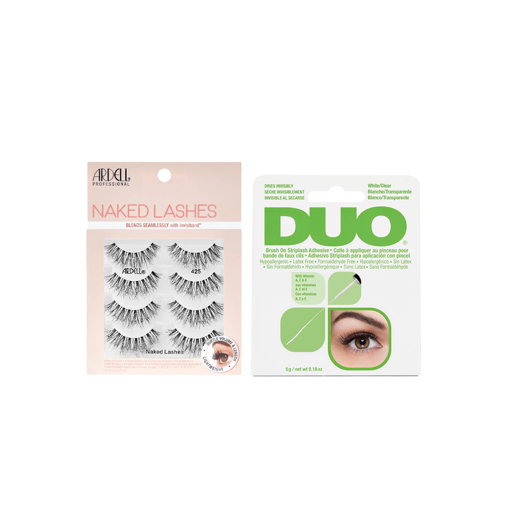 Pair Ardell Naked 425 Lashes 4-Pack with Duo Brush-On Adhesive Clear 5g for an everyday lash kit. Soft wispy lashes with invisible clear glue for a natural, effortless look — save 20% when purchased together.